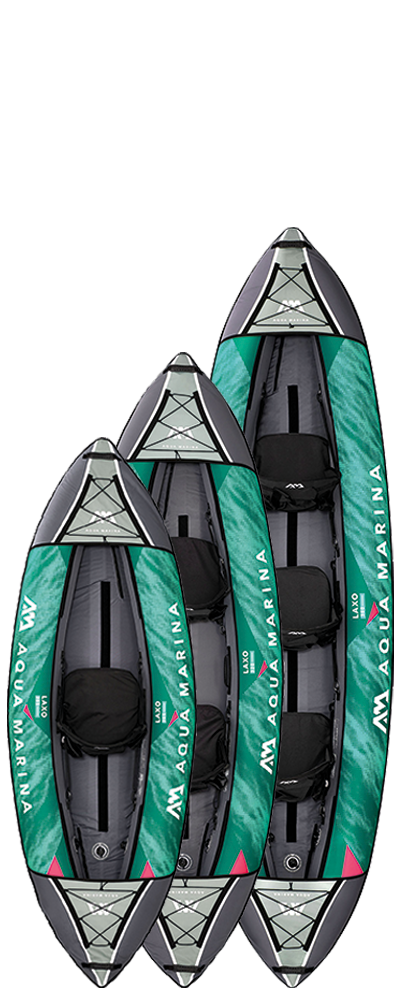The recreational LAXO series is upgraded with revolutionary protective hull fabric (AQUASHELL™ Technology). The eye-catching new graphics are born to be ever-lasting through advanced digital printing technique. Coming in three lengths fit up to three people, LAXO models are ideal for exploring lakes and gentle rivers by offering a balance of stability and tracking. Perfect for beginners looking for ease of entry and exit on shorter trips.